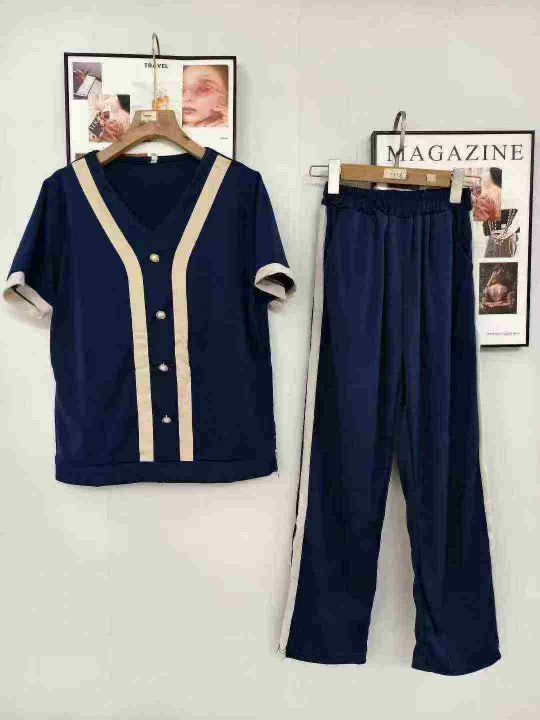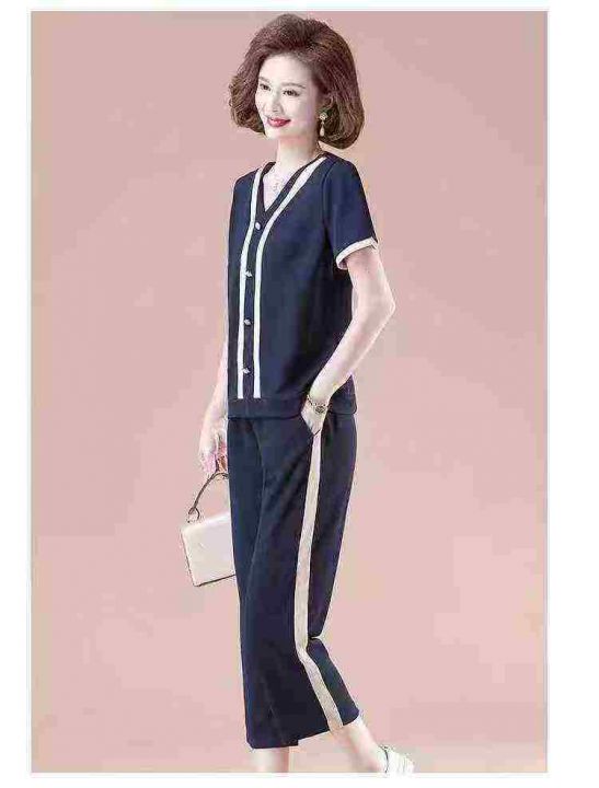 100 套夏季时尚运动套装短袖上衣女洋气休闲减龄两件套...
