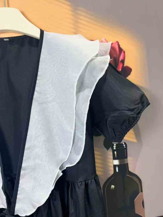 2025夏季新款时尚女装法式赫本风荷叶边V领减龄显瘦中长款连衣裙 独立包装 码数1-5码 数量225件 全清7.5