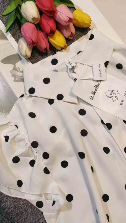 品牌高级感气质波点百搭小飞袖衬衣,[爱心]120件左右,码数S-2XL,穿80-140斤,万佳档口货,原包装️瑕疵,[666]分货加一。 货号:1323