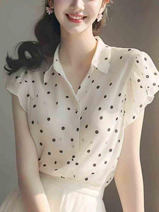 捡漏全清:9.9一件品牌高级感气质波点百搭小飞袖衬衣...