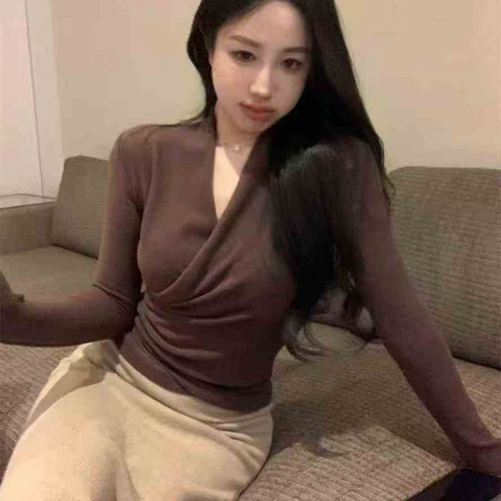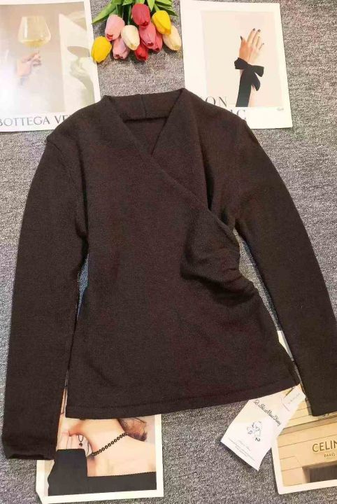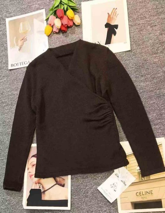 品牌辣妹小众设计感别致交叉V领收腰上衣,[爱心]340件左右,均码穿80-130斤,万佳档口货,原包装️瑕疵,[666]实体店品质,分货加一。 货号:1323