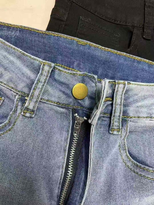 夏季新款高弹力洗水棉网红复古弹力紧身直筒骑行牛仔5...