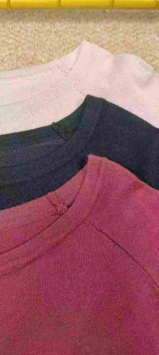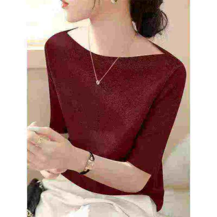 【可多种穿法】中袖洋气螺纹一字领上衣内搭纯欲风T恤显瘦打底衫,单款三色,独立包装,尺码sml码,高弹力面料,数量132件,秒杀价6.5