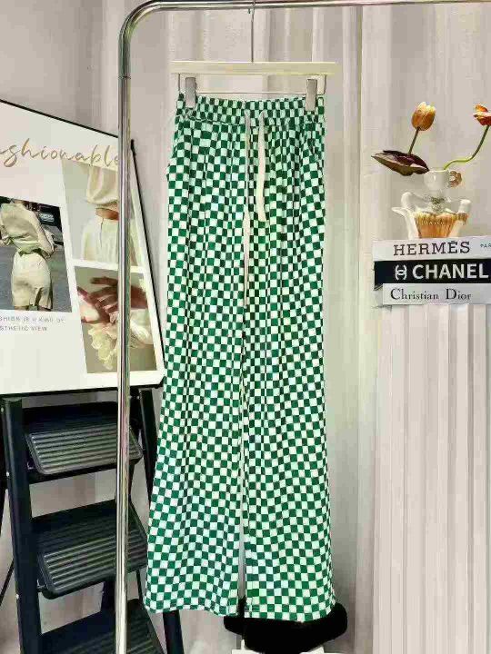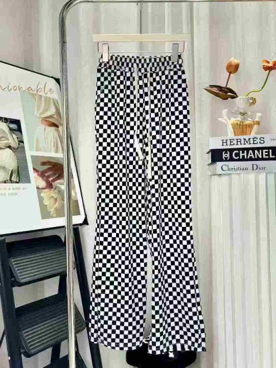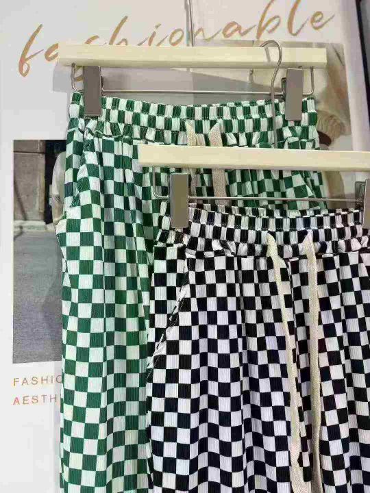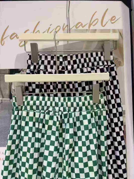 冰丝棋盘格裤子女夏季薄款高腰显瘦垂感休闲阔腿裤 有弹力 独立包装 码数1-5码 数量120件 全清6.8。 货号:24862