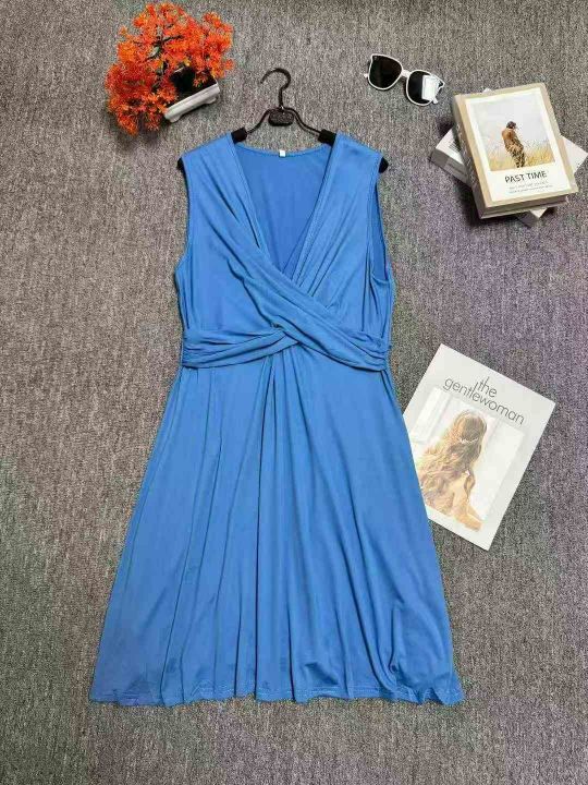 欧美跨境新款V领无袖休闲收折女士连衣裙 ,数量 220 条,码数 S-2XL。 高弹力,品质好,有独立包装。全清 4.8