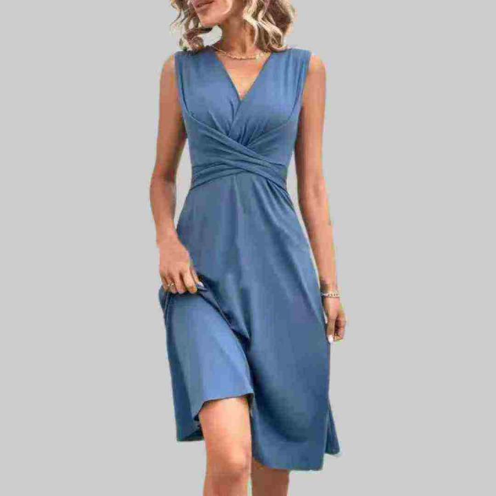 欧美跨境新款V领无袖休闲收折女士连衣裙 ,数量 220 条,码数 S-2XL。 高弹力,品质好,有独立包装。全清 4.8