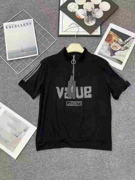 ☕️时尚烫钻拉链短袖显瘦百搭T恤女妈妈装立领夏季连...