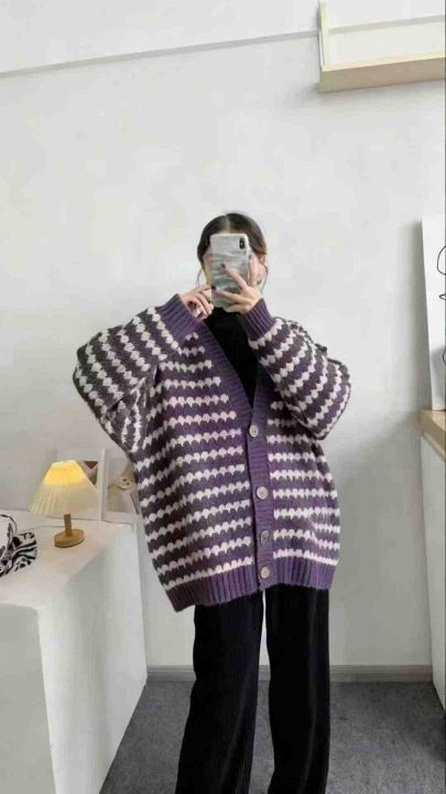 秋冬新款高品质的法式复古撞色条纹加厚宽松慵懒风毛衣开衫,独立包装,均码面料软糯厚实大版型,1200左右,全清13.9元超低价秒杀!分货加一!