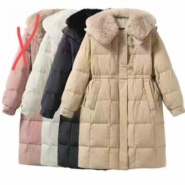 韩系高级感大毛领大长款棉服,数量1000件,码数M-2XL,单款3色,黑色,白色,卡其色,独立包装吊牌,分货50件一份➕1元。 货号:1323