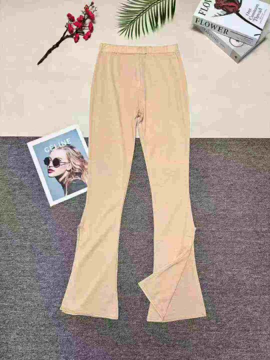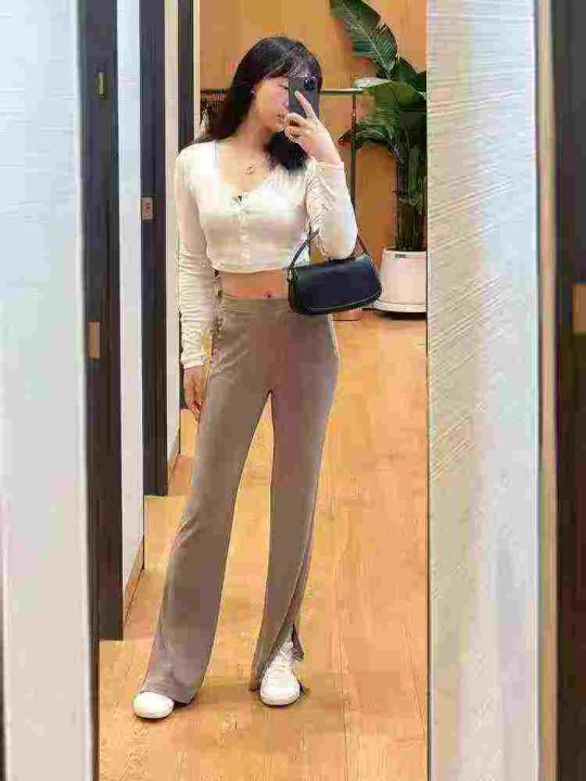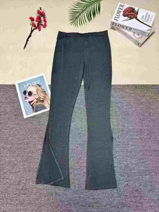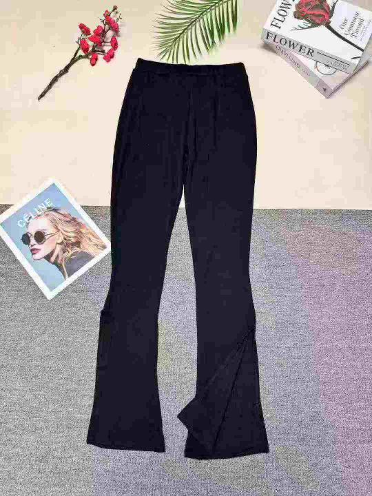 洋气显瘦微喇叭开衩裤子,整款三色,数量:371套,码数:S-2XL,品质好,有独立包装。。 货号:24862