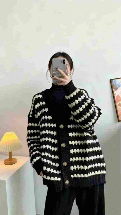 秋冬新款高品质的法式复古撞色条纹加厚宽松慵懒风毛衣开衫,独立包装,均码面料软糯厚实大版型,1200左右,全清13.9元超低价秒杀!分货加一!