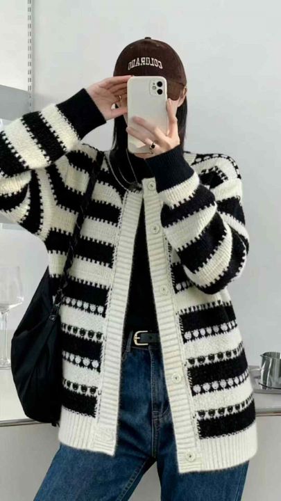 秋冬新款高品质的法式复古撞色条纹加厚宽松慵懒风毛衣开衫,独立包装,均码面料软糯厚实大版型,1400左右,全清13.9元超低价秒杀!分货加一!