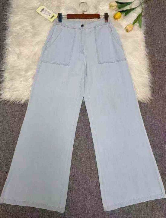 品牌UIKI女士棉麻裤腿加长牛仔宽松阔腿裤300条,黑白...