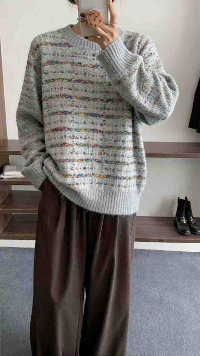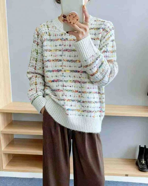 秋冬新款设计感彩线软糯宽松慵懒风加厚甜美显瘦减龄圆...