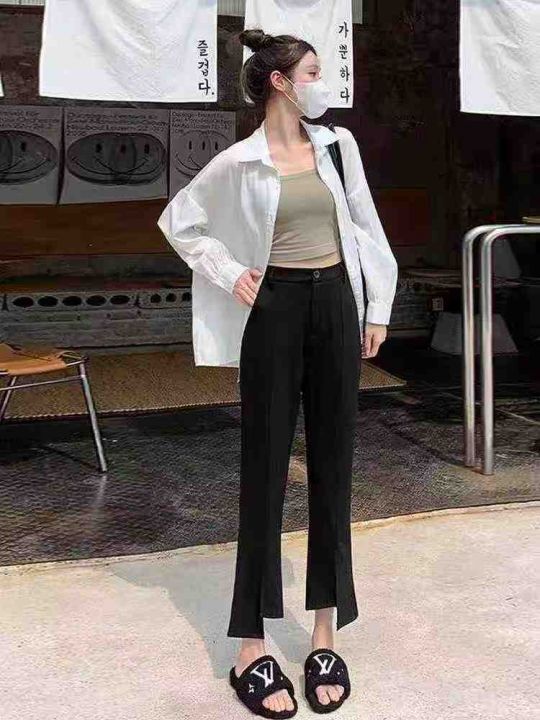 ☕️开叉西装裤女春秋新款高腰显瘦胖mm大码阔腿裤不规...