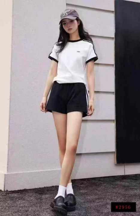 350多条夏季女款时尚侧边双条宽松休闲运动短裤,均码...