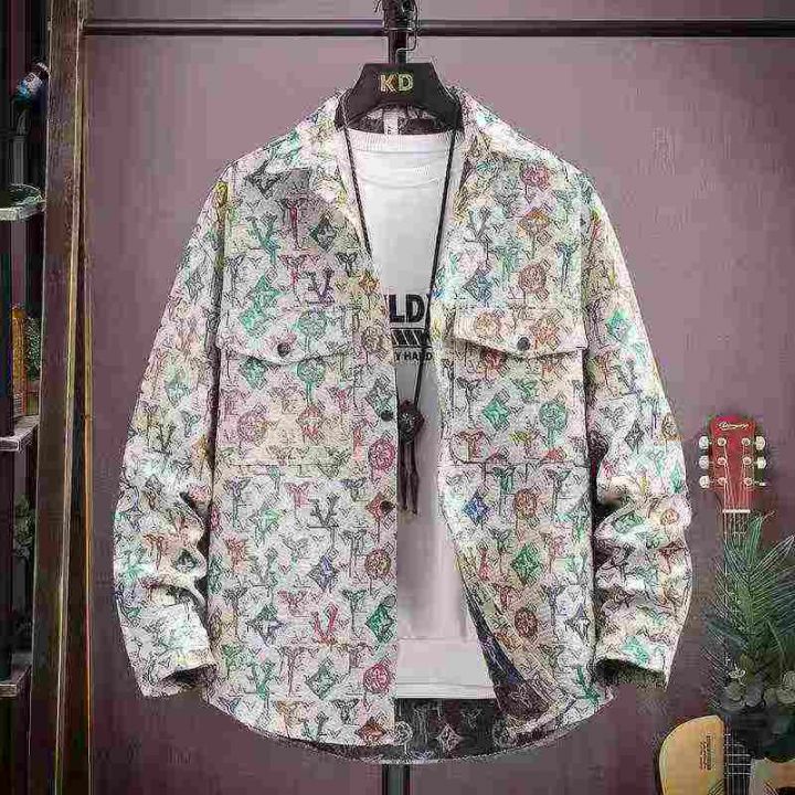 全清16.879件大码肥佬男装 潮牌vintage复古编织提花满印长袖衬衫男春秋款网...