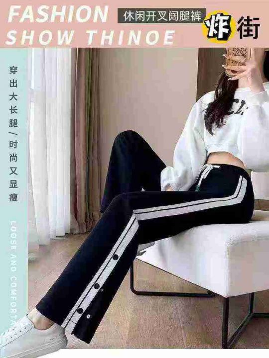 ☕️休闲运动裤黑色条纹高腰垂感宽松显瘦嘻哈ins潮按扣直筒阔腿裤110条全清9.8元,卫裤不加绒 码数XL 4XL 5XL 松紧腰合适100-160斤,独立包装,单款2色