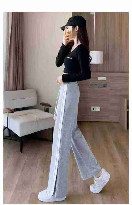 ☕️休闲运动裤黑色条纹高腰垂感宽松显瘦嘻哈ins潮按...