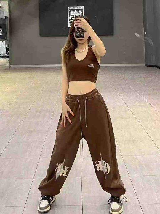 ☕️欧美hiphop街舞裤子咖色美式复古运动卫裤爵士舞vi...