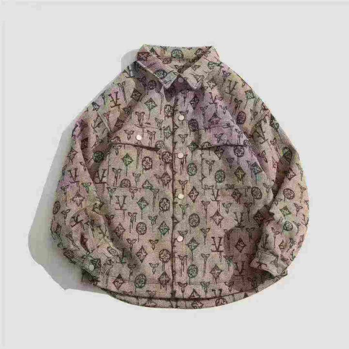 79件大码肥佬男装 潮牌vintage复古编织提花满印长袖衬衫男春秋款网红宽松大版翻领衬衣外套,单款单色 面料厚实,码数7XL-8XL码(200-300斤可穿),独立包装带吊牌。
