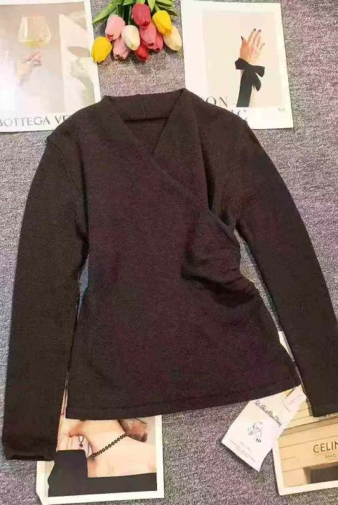 品牌辣妹小众设计感别致交叉V领收腰上衣,[爱心]340件左右,均码穿80-130斤,万佳档口货,原包装️瑕疵,[666]实体店品质,分货加一