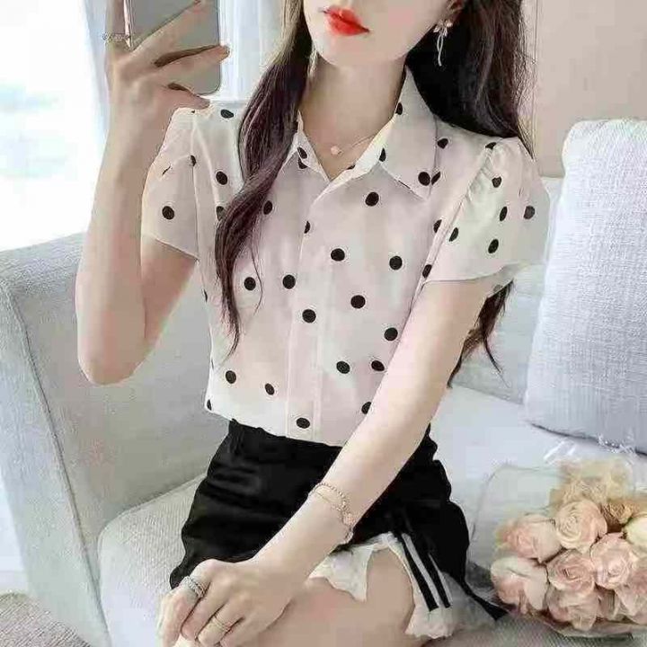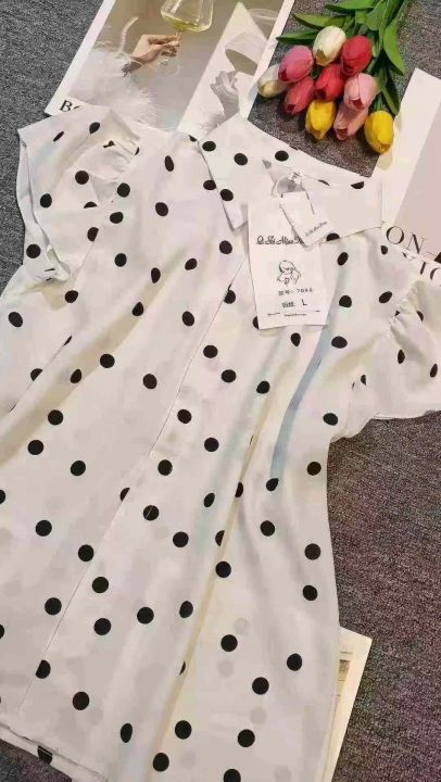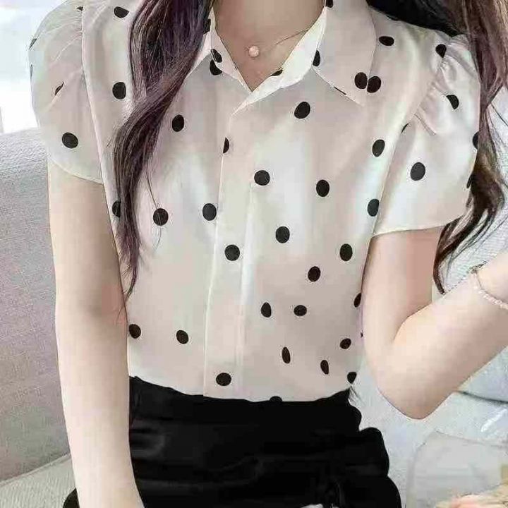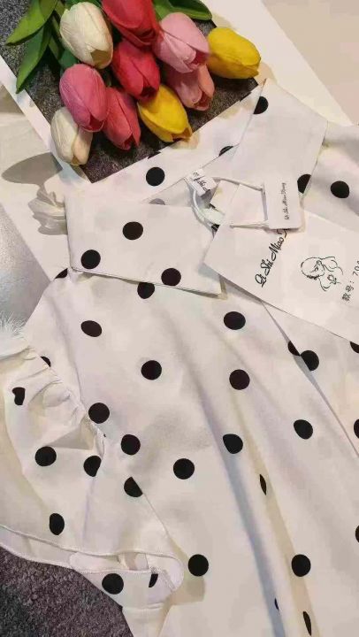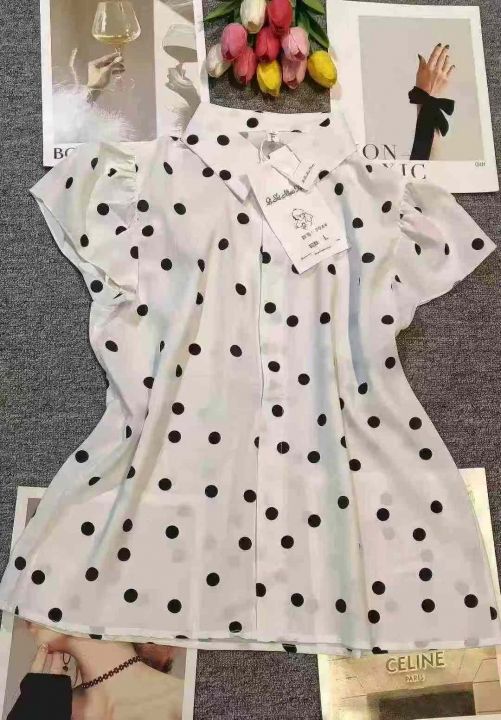 品牌高级感气质波点百搭小飞袖衬衣,[爱心]120件左右,码数S-2XL,穿80-140斤,万佳档口货,原包装️瑕疵,[666]分货加一