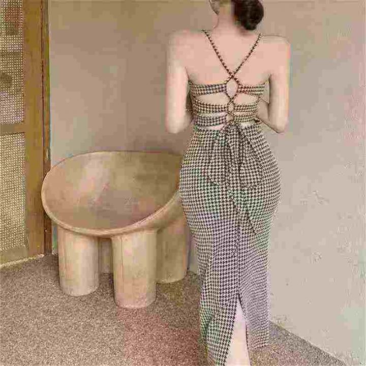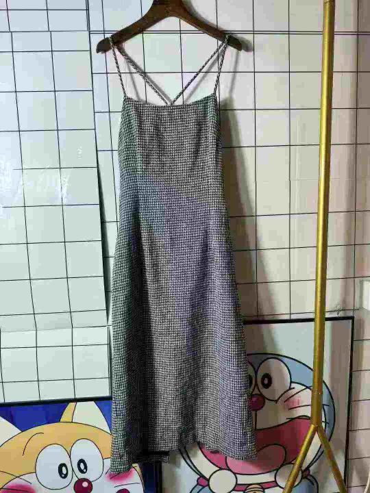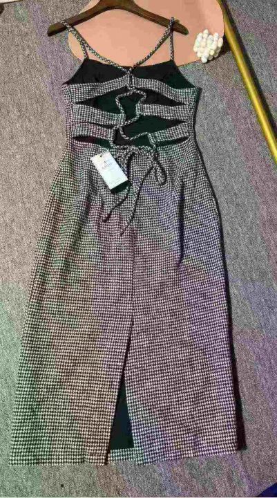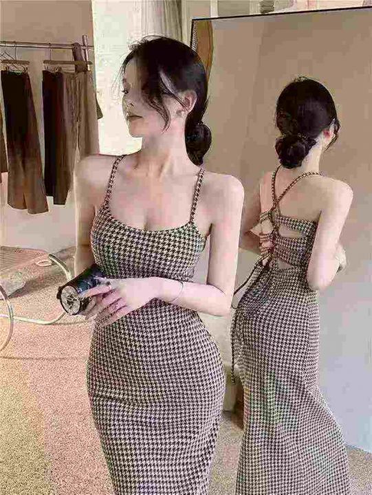 9.9清118件高级感复古千鸟格吊带连衣裙女夏季纯欲风性感露背收腰中长款包臀裙 面料质感杠杠滴实体店可入码数S-XL 独立包装带吊牌。 货号:24862