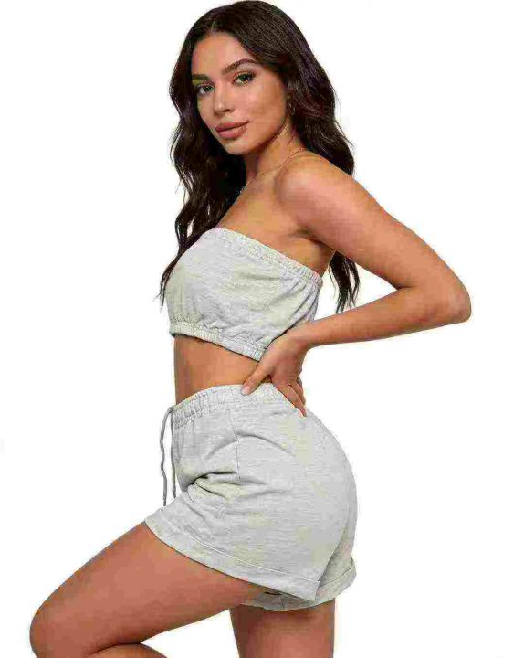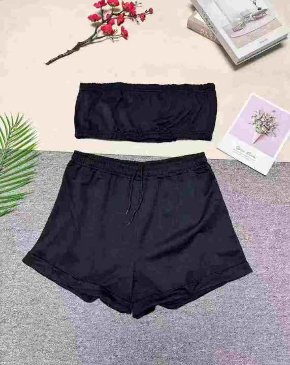 欧美性感抹胸短裤两件套,整款三色,数量:112件,码数M-2XL,品质好,有独立包装。。 货号:24862