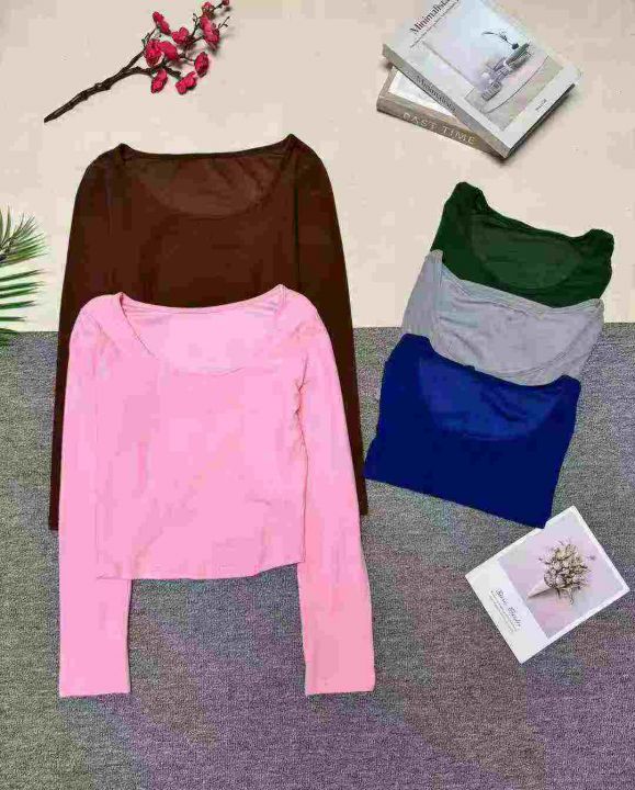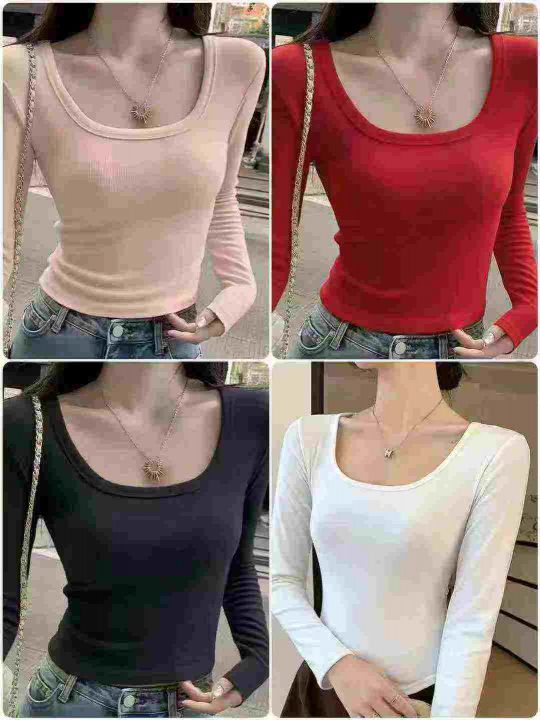 5.5清美式靓妹辣妹纯色圆领长袖t恤女,整款多色,高弹...