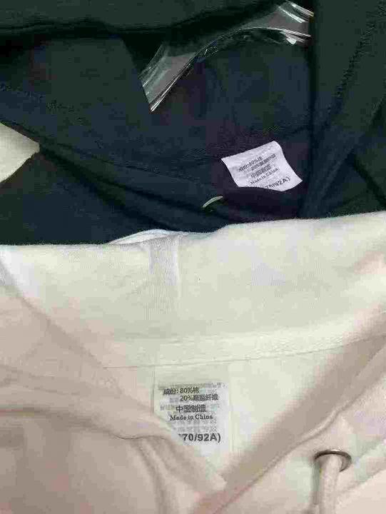 秋冬新款重磅纯棉男女同款连帽带兜卫衣3000件,M~2XL版型宽松。黑白两色黑色约2300件,白色约700件。
