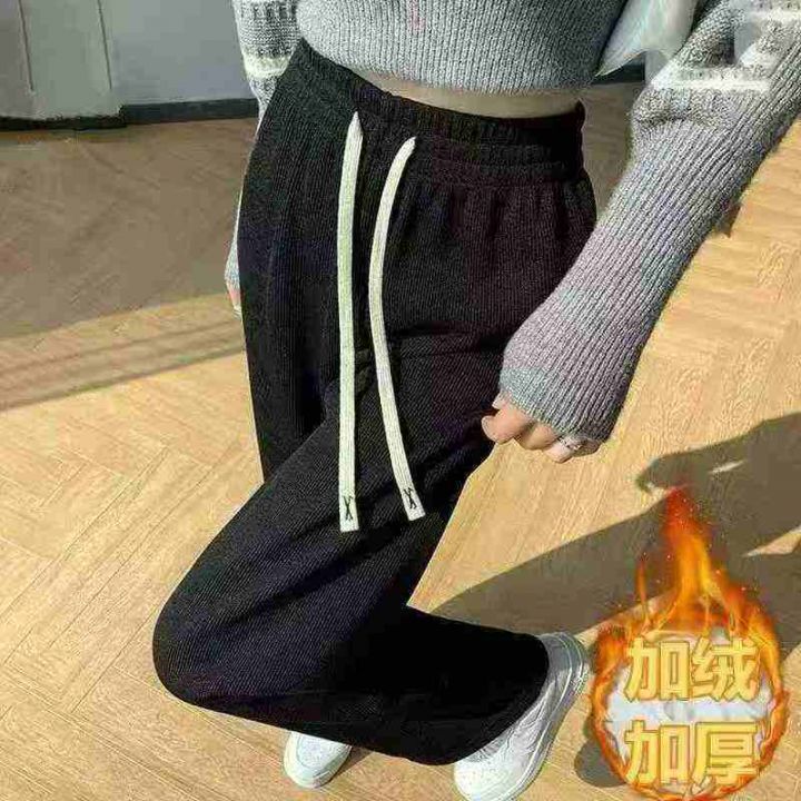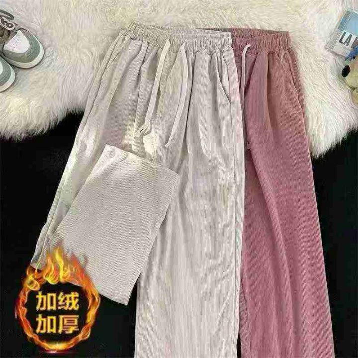 灯芯绒阔腿裤冬季加绒宽松垂感高腰显瘦休闲抽绳直筒女裤,整款三色,独立包装,320件左右,M-3XL,10.8清,分+1