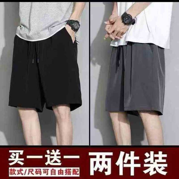 冰丝四面弹短裤男港风ins潮流宽松百搭休闲五分裤夏季男装外穿运动裤子,整...