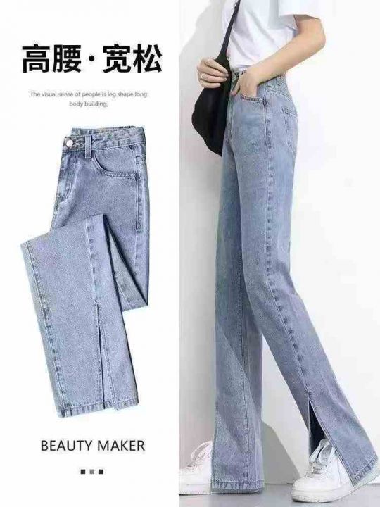 秋季新款洗水棉直筒阔腿开叉设计款牛仔裤,独立包装带...