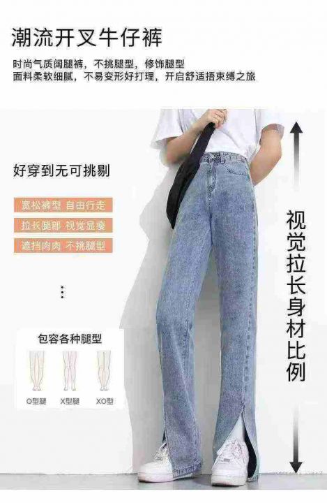 秋季新款洗水棉直筒阔腿开叉设计款牛仔裤,独立包装带...