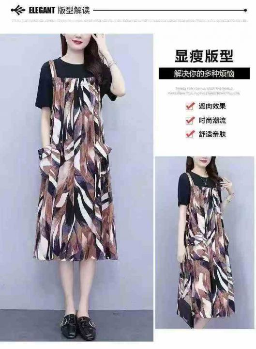 全清价8.8背带裙套装女遮肚显瘦减龄洋气宽松裙子两件...