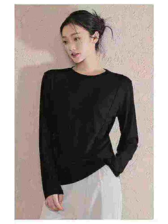 春秋新款外穿打底净版简约弹力修身显瘦弹力棉长袖t恤上衣,独立包装,码数S...
