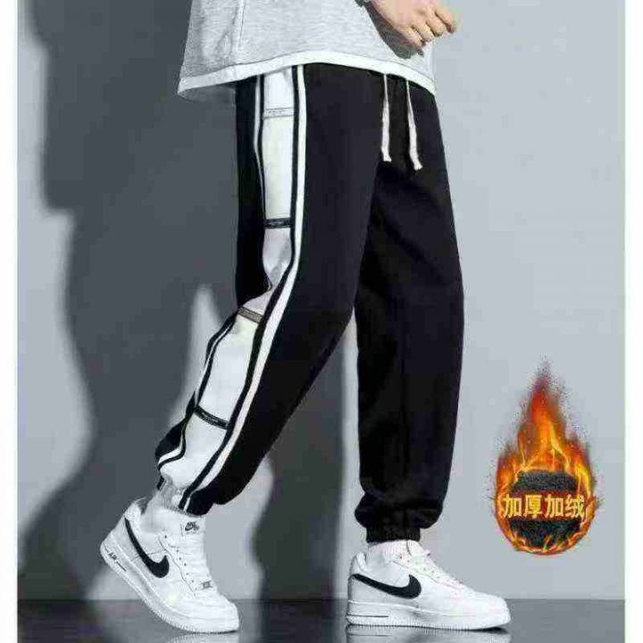 侧边条纹灯芯绒男冬季加绒潮牌宽松束脚裤子,整款三色,独立包装M-3XL,800...