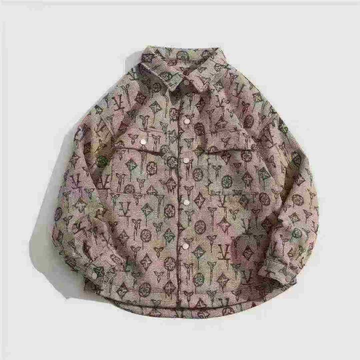 全清16.879件大码肥佬男装 潮牌vintage复古编织提花满印长袖衬衫男春秋款网...