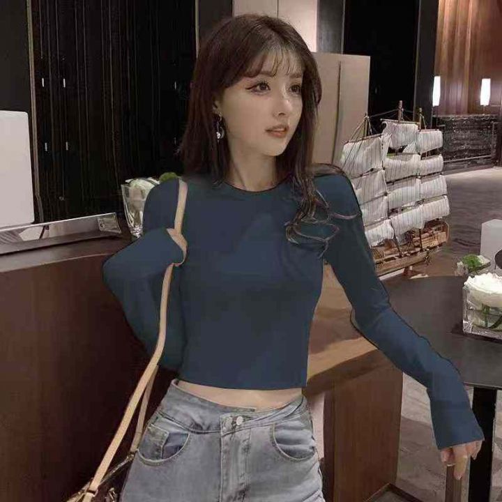 春秋新款外穿打底净版简约弹力修身显瘦弹力棉长袖t恤...