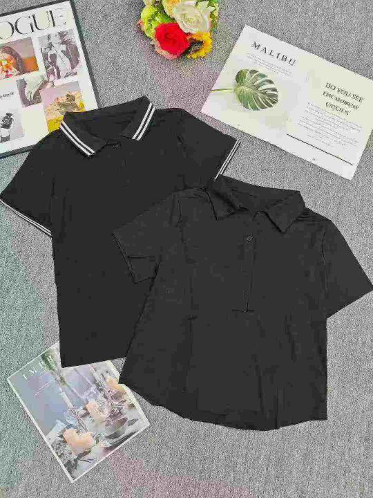 电商仓回收75件百搭经典黑色女士休闲Polo衫短袖T恤,码数S-XL。简约时尚休闲,面料有弹性。有独立包装,数量有限,先到先得!