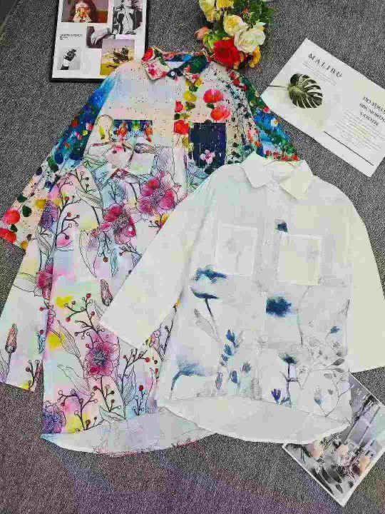工厂回收357件外贸女士宽松大版印花长袖衬衫,码数S-2XL。版型质量好,颜色丰富鲜艳,货品新,有独立包装。分货➕1