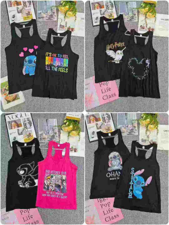 电商仓回收1600件韩系休闲夏季靓妹卡通印花背心,码数S-2XL。面料柔软有弹性,舒适好穿,有独立包装。分货➕0.5