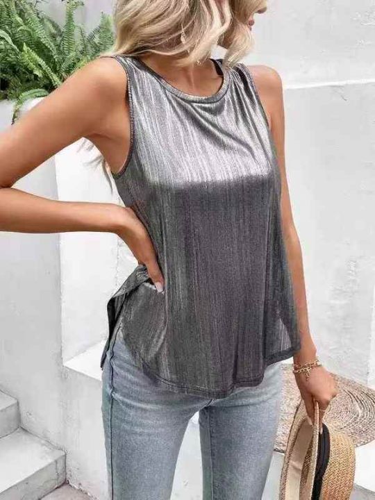 欧美女装裙褶皱纯色吊带/亮面女士T恤 上衣,数量 215 件,码数 S -3XL。品 ...