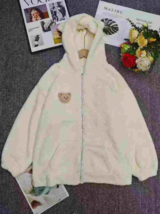 电商仓回收158件奶芙芙柔软舒适休闲连帽纯色冬季外套,码数S-XL。内里加婴儿绒柔软舒适,宽松大版型,小熊立体别针可拆卸,款式质量都非常好,全部独立包装,分货➕1