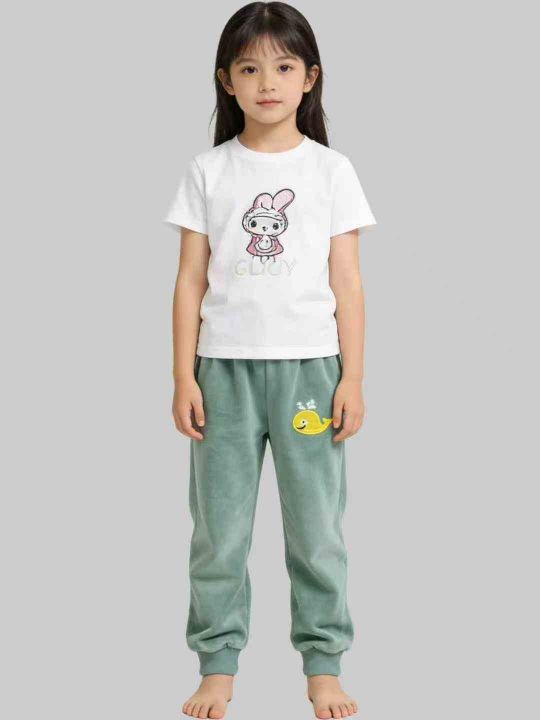 5000件左右秋冬男女童新款双面加绒保暖一体绒运动印花刺绣卫裤,双面绒80%一体绒20%。整款。可穿3~8岁左右。4件一包。整首齐码。亏本清。5.9秒杀。 货号:24862