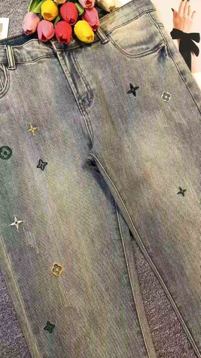 品牌时尚百搭水洗刺绣设计感潮牌牛仔裤,[爱心]130件左右,款号#A807,码数M-2XL,穿80-150斤,万佳档口货,原包装️无瑕疵,[666]实体店两三百品质,分货加一。 货号:1323