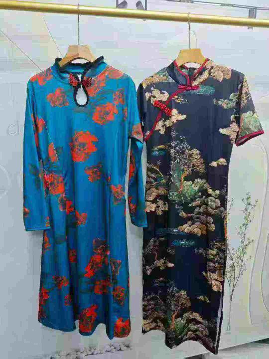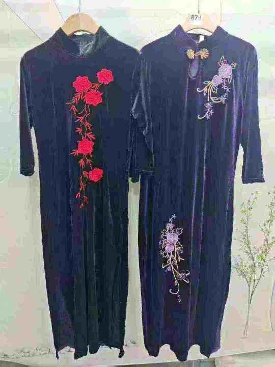 天猫仓回收232件改良金丝绒长款高端礼服复古气质优雅开叉旗袍连衣裙,码数S-3XL。版型质量好,面料柔软有弹性,满满高级感。有独立包装。分货➕1