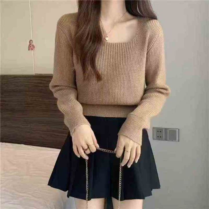 秋季新品方领高腰净版简约基础百搭套头毛衣, 独立包...