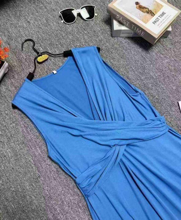 欧美跨境新款V领无袖休闲收折女士连衣裙 ,数量 220 条,码数 S-2XL。 高弹力,品质好,有独立包装。全清 4.8。 货号:24862